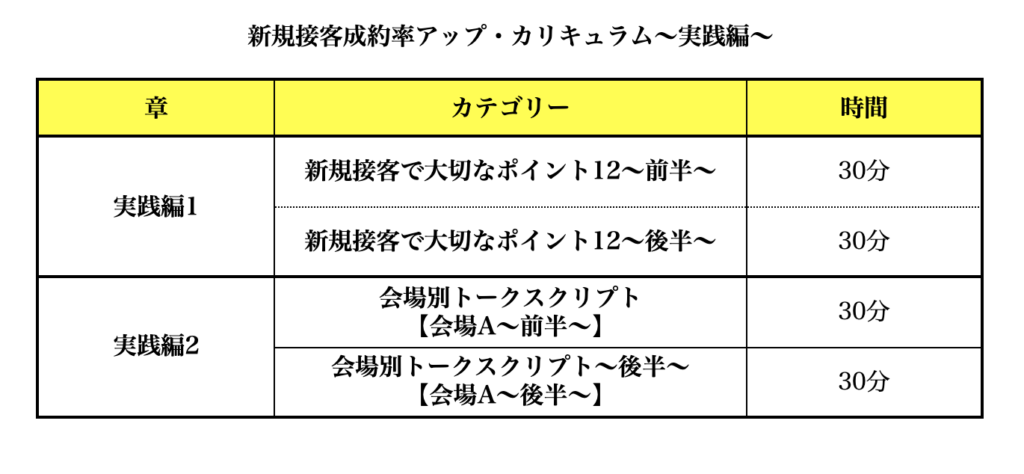 「新規接客成約率アップ・カリキュラム」講座を