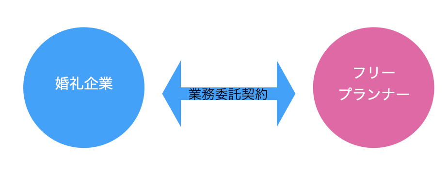 対して業務委託の場合ですが、婚礼企業と出向プランナーの間には直接的な契約関係はありません。