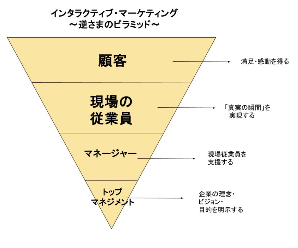 要は逆のピラミッドとなっているということで、この理由は、現場の従業員こそが「真実の瞬間」の体現者そのものだと考えられているからです。