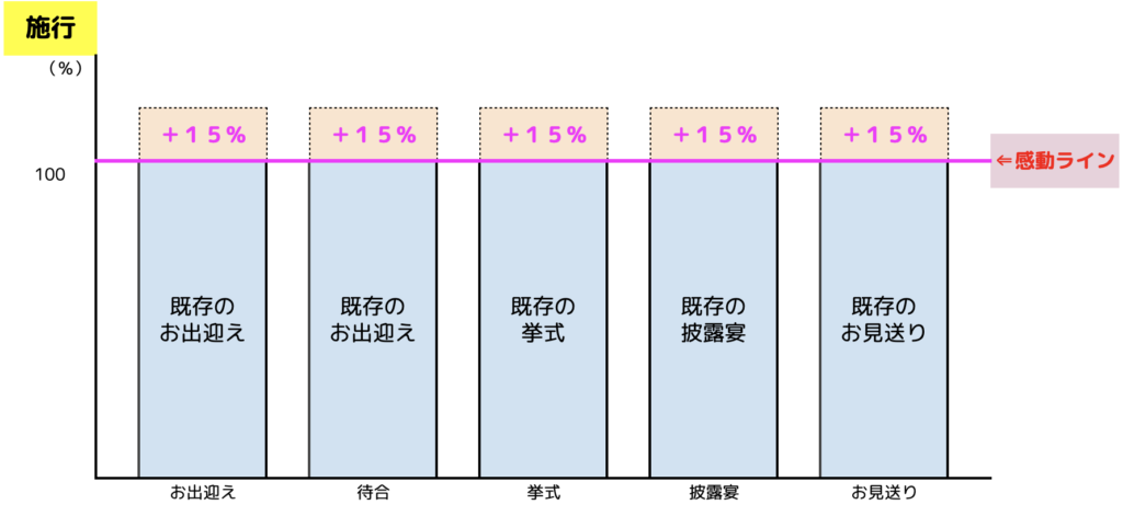 誰もができないと思うことをやってのける「限界を超えた先」に感動が生まれるので、結婚式に携わる事業者はそのスーパーイリュージョンを作り出すことに力を注いでいこう!という発想です。