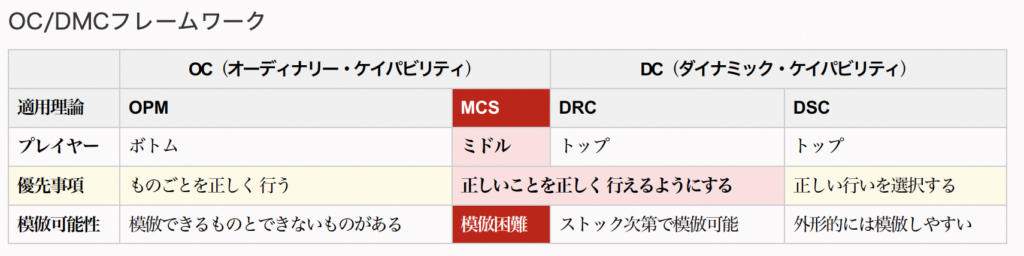 | 現場の実行力 | ボトム(現場) | 模倣できるものとできないものがある |