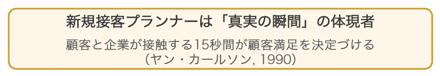 「真実の瞬間」とは、最前線の従業員が顧客と接するわずか15秒の瞬間が、顧客満足を決定づけるという概念です(ヤン・カールソン)。