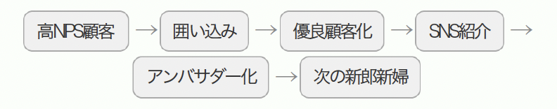 高NPS顧客 → 囲い込み → 優良顧客化 → SNS紹介 → アンバサダー化 → 次の新郎新婦 - (5)CRM循環における位置づけ