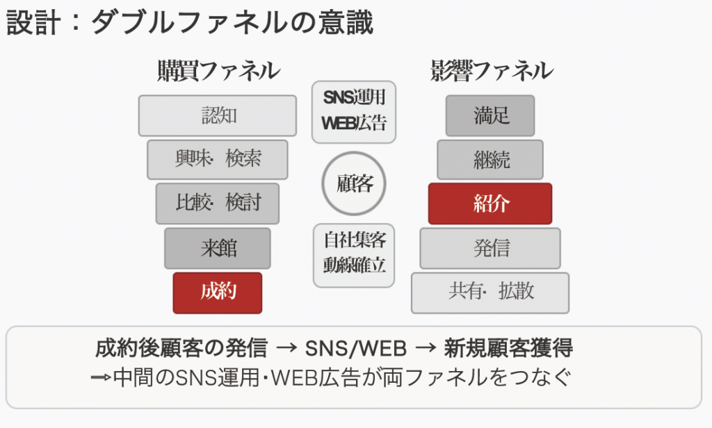 ここまで、成約後のShareまで設計すること、ダブルファネルを統合することの重要性を説明してきました。