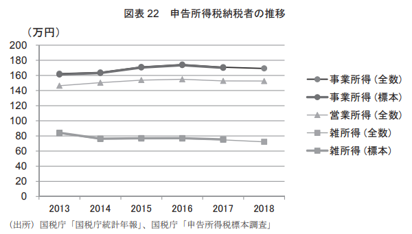 副業の場合は、雑所得に含ま れる。これらの所得の動きを統計でみると、