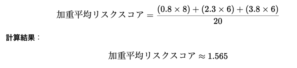 続いて、加重平均リスクスコアは、持ち込みの有無や条件に応じた割合を考慮し、以下のように計算します。