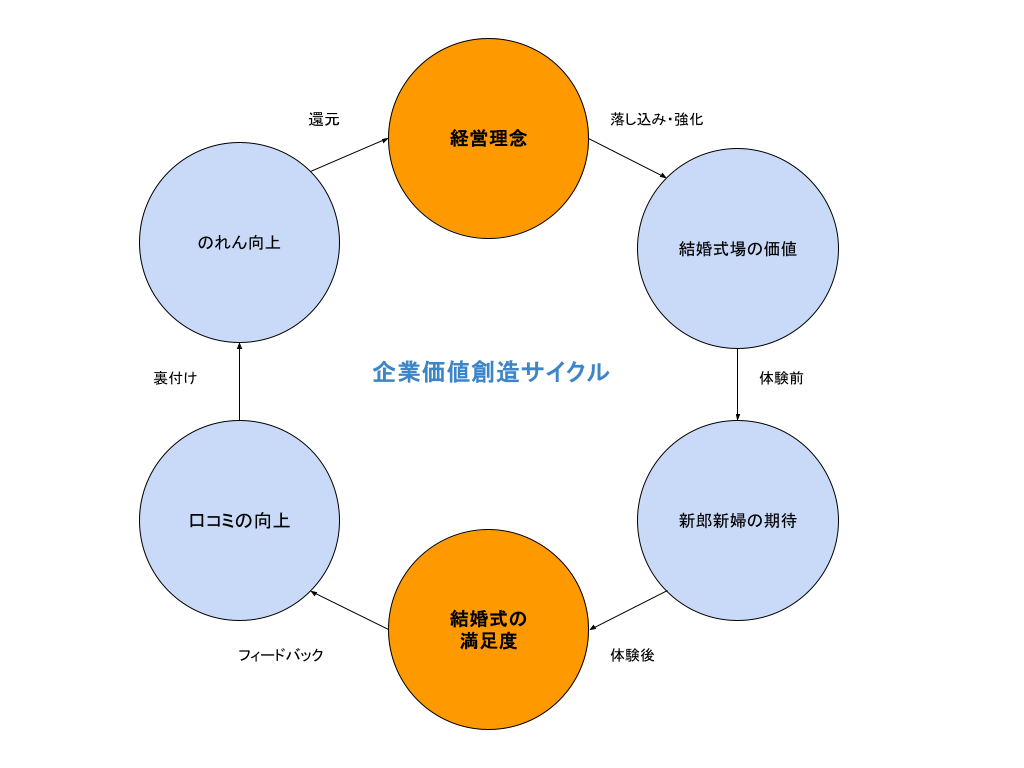 経営理念が「のれん」の元になるという考え方を理解していただいたところで、結婚式場でどのような価値の循環が起きているかを見てみましょう。
