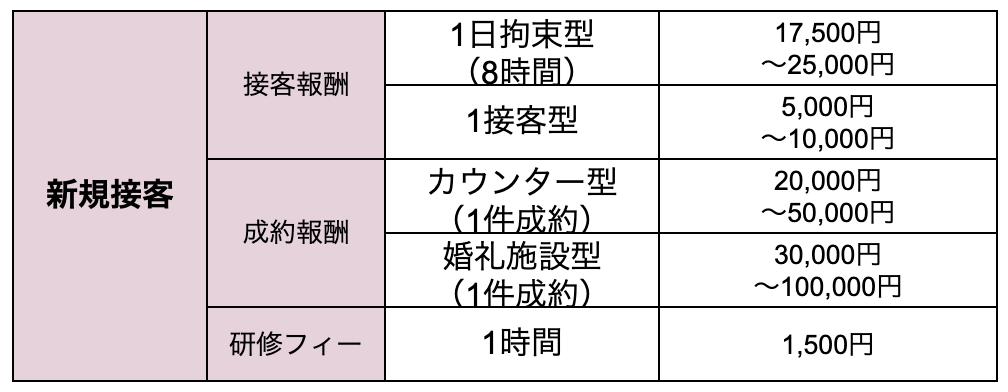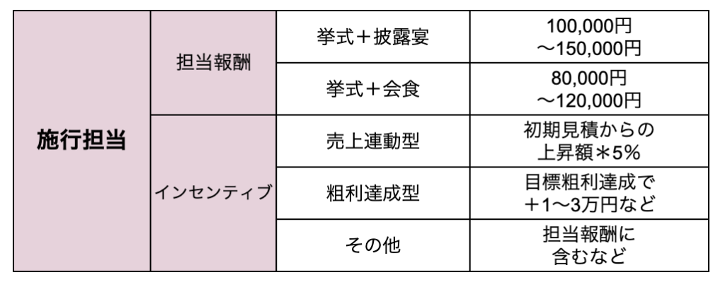 - 施行担当;結婚式1件ごとの担当料+交通費